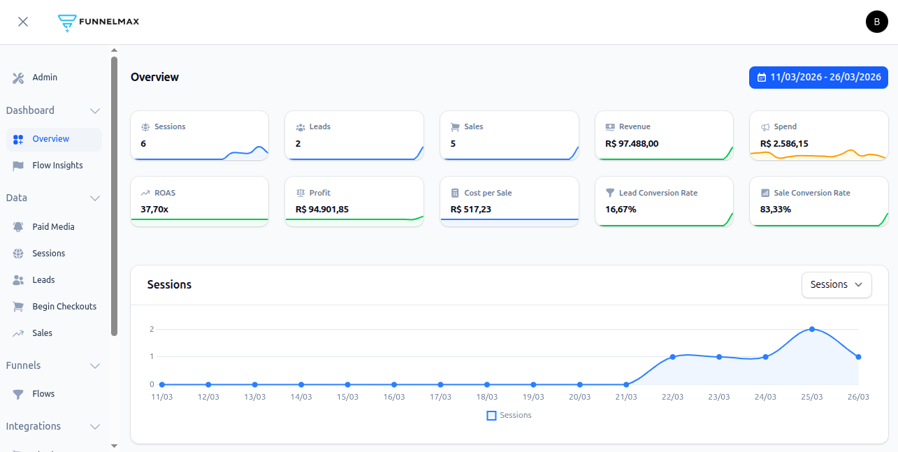 Começar grátis →De funis visuais a analytics em tempo real — tudo em uma plataforma integrada.